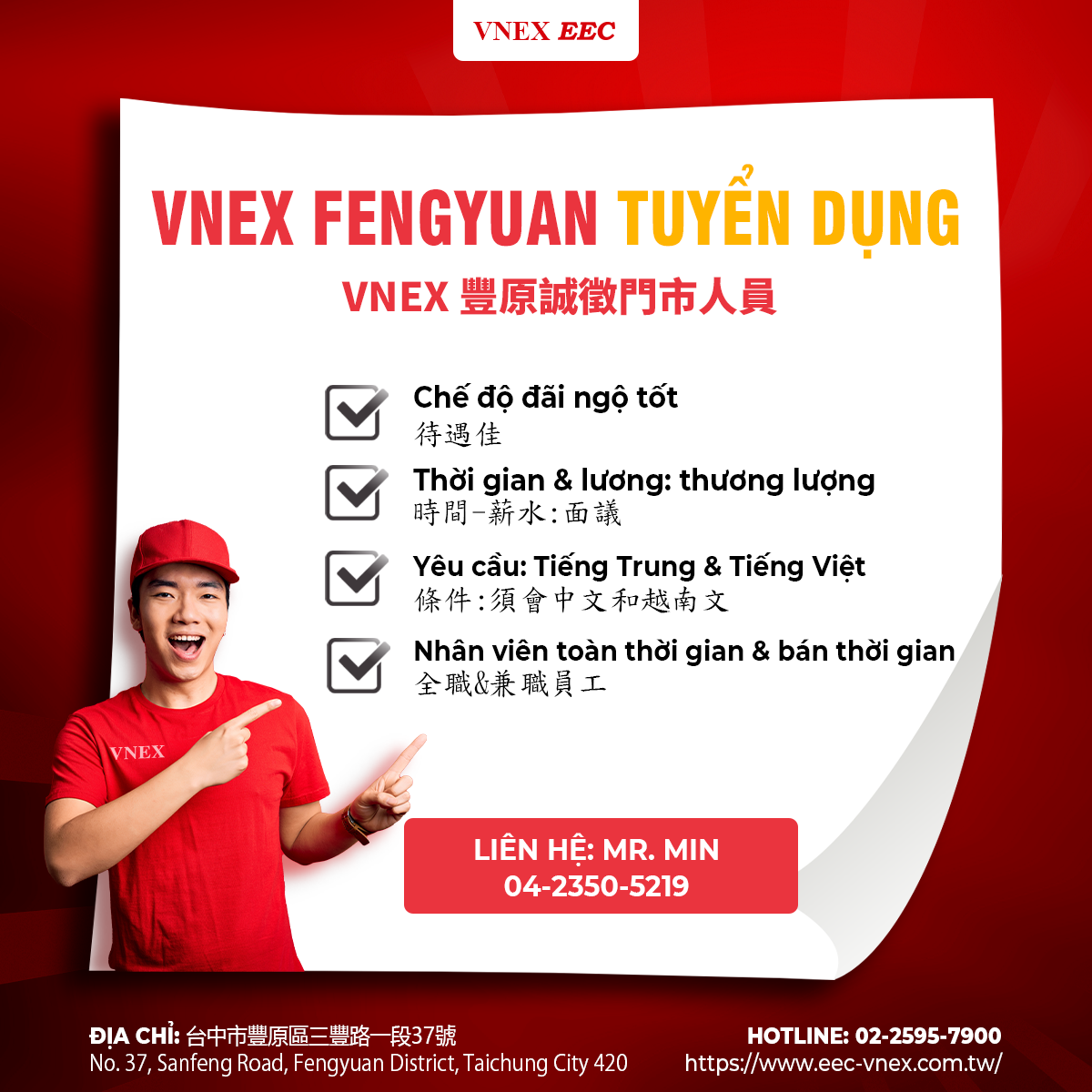- Địa điểm làm việc: Chi nhánh VNEX Fengyuan