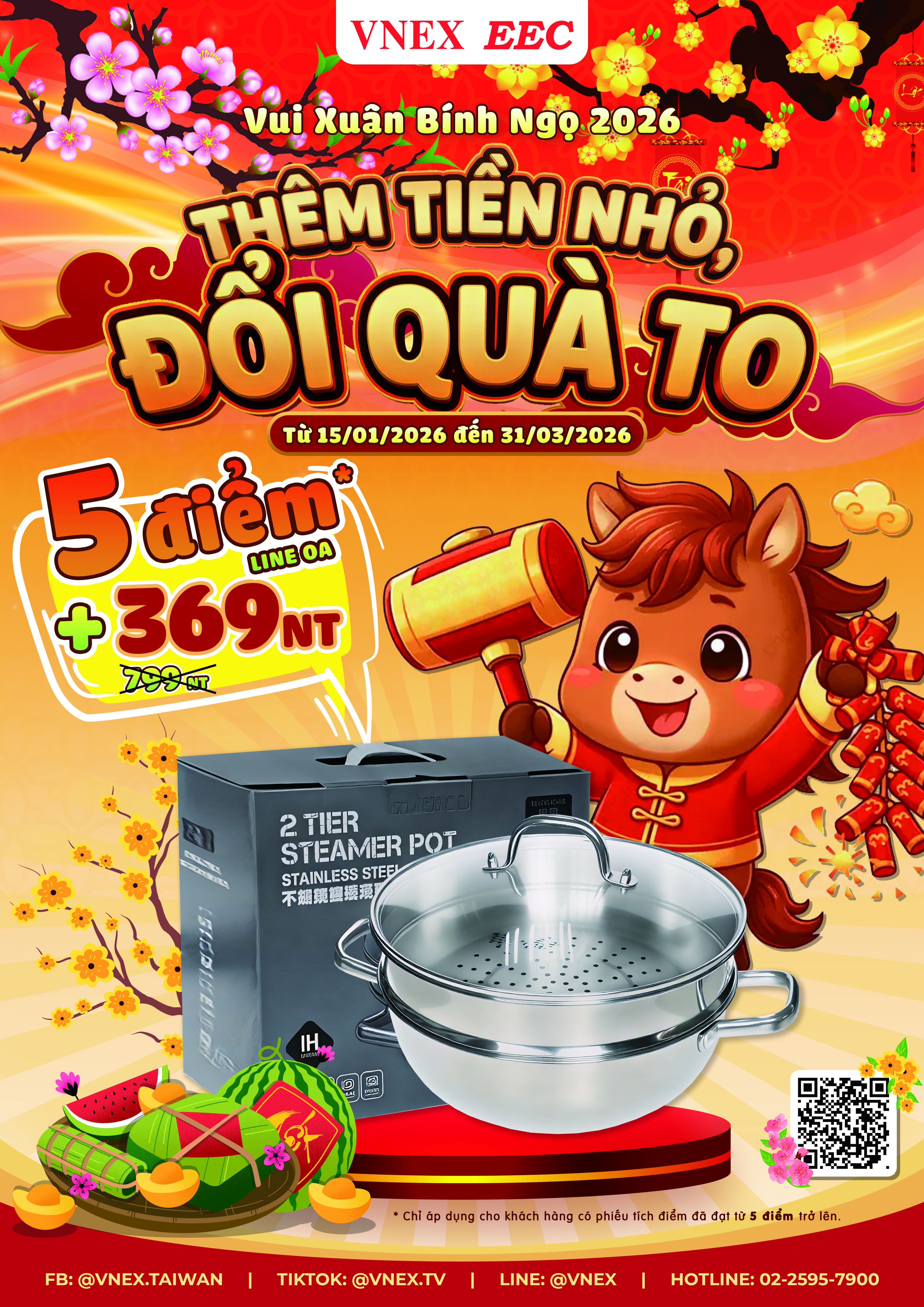Nhân dịp Xuân Bính Ngọ 2026, nhằm tri ân Quý Khách hàng đã luôn tin tưởng và đồng hành cùng VNEX trong suốt năm vừa qua, chúng tôi trân trọng triển khai chương trình ưu đãi với quà tặng tiện ích hấp dẫn. Đặc biệt, chương trình dành riêng cho những khách hàng đã tích cực tham gia hoạt động tích điểm trên Line OA tại hệ thống cửa hàng VNEX..